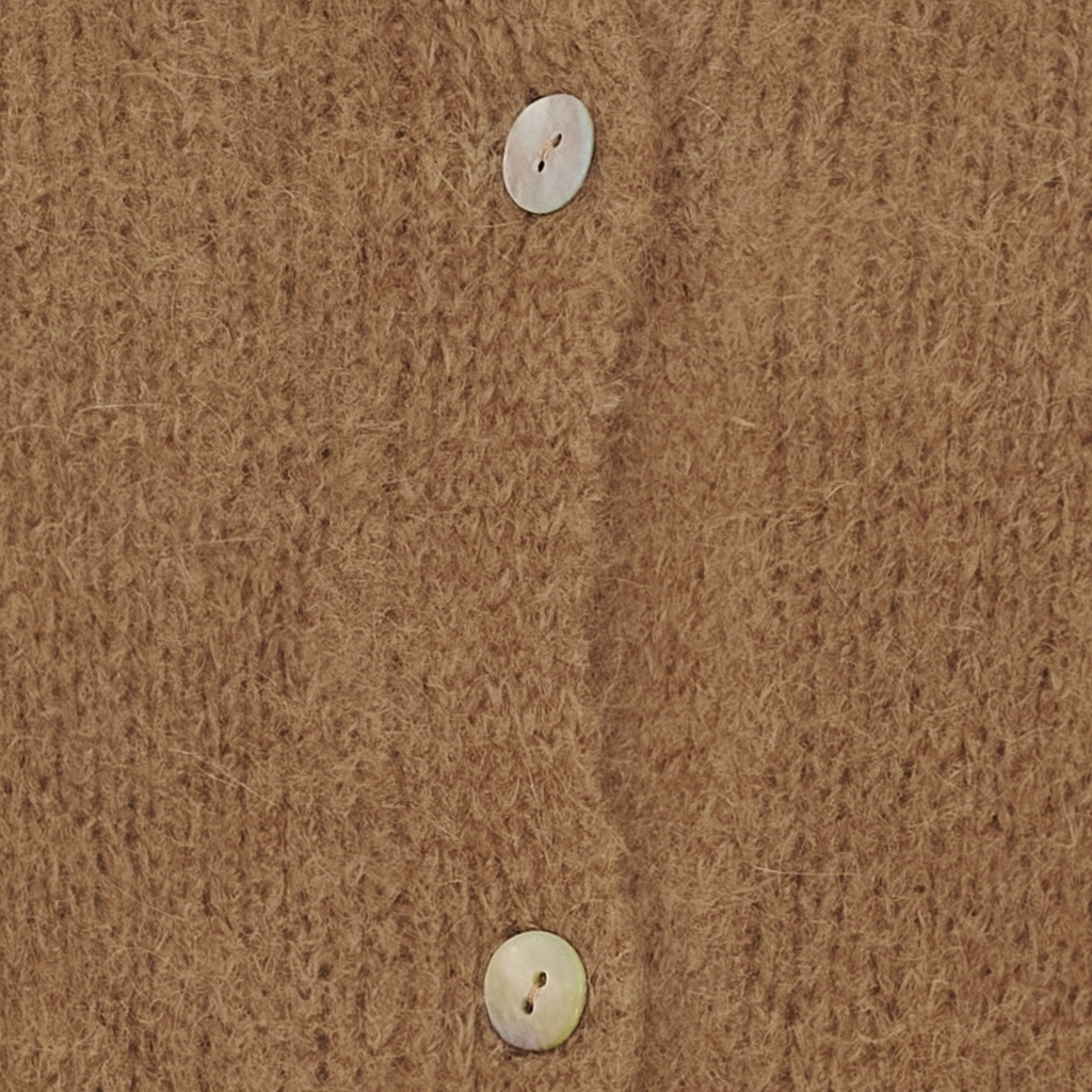 Pehmeä ja hieman pörröinen Martan neuletakki. Neuletakkia voi pitää myös neuleen tavoin napit suljettuina.