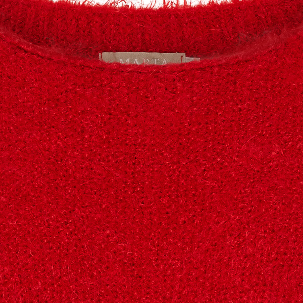 Martan lyhyt, lepakkohihainen neulepaita. Kaunis punainen